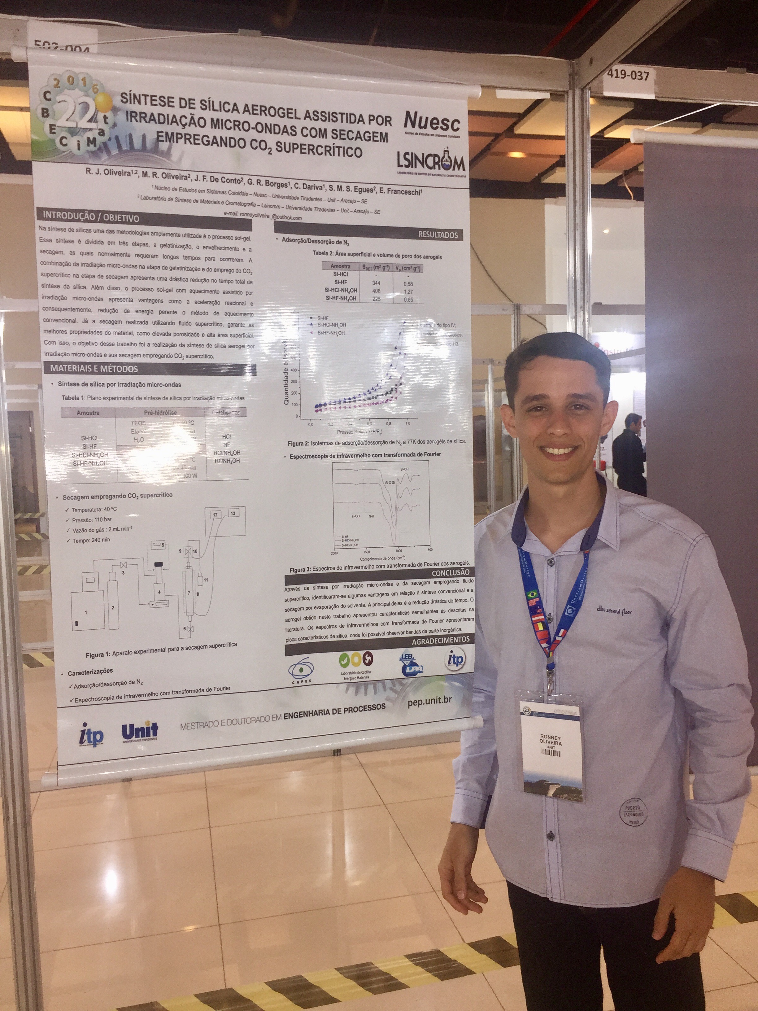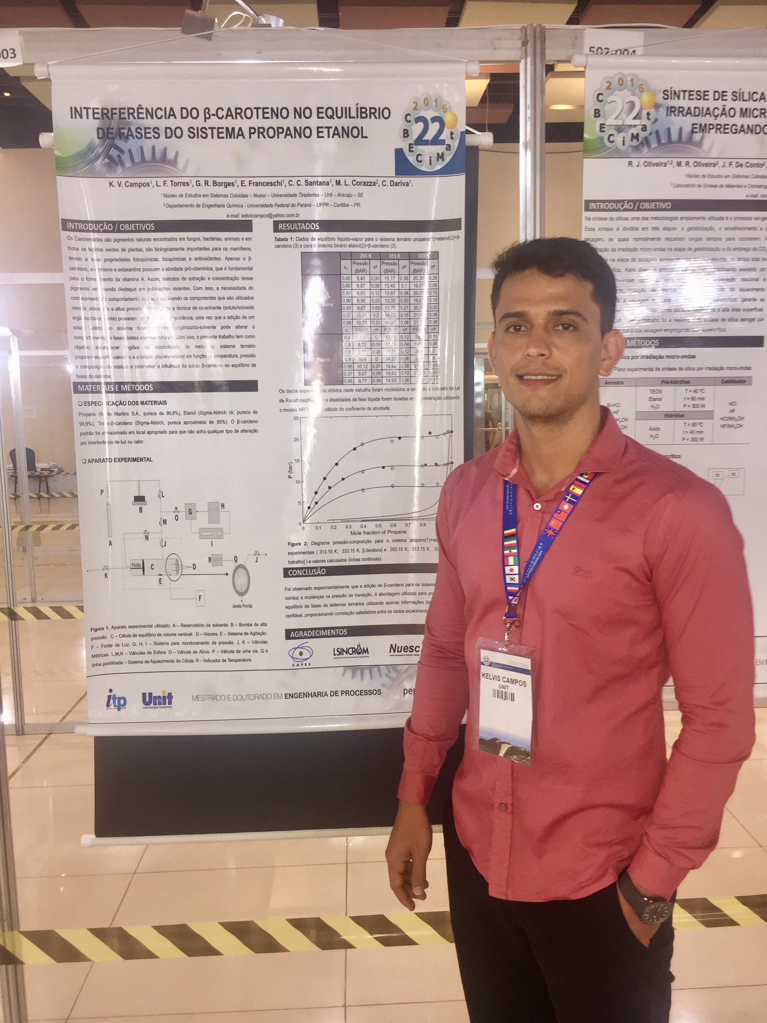 O discente de Doutorado em Engenharia de Processos Leonardo Sant’Anna Santos e o discente de Mestrado Ronney José Oliveira Santos com orientação dos professores Elton Franceschi e Silvia Maria da Silva Egues e o discente de Mestrado em Engenharia de Processos Kelvis Vieira Campos com orientação dos professores, Claudio Dariva e Cesar Costa Pinto, participaram e apresentaram trabalhos referentes as suas teses e dissertações no 22º Congresso Brasileiro de Engenharia e Ciência dos Materiais – CBECiMat.