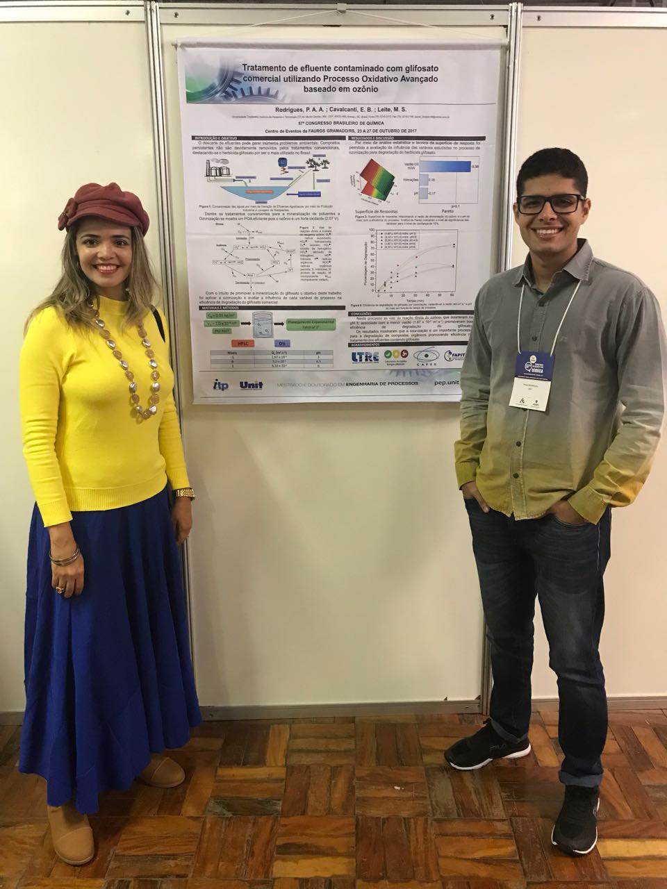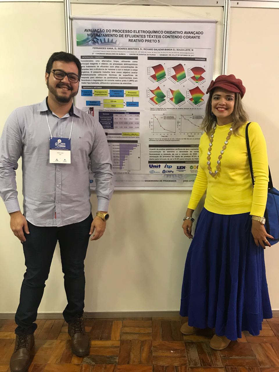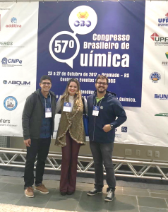 A Professora Manuela Leite, o mestre recém formado pelo PEP Danilo Viana, que teve como orientadores os professores Manuela Leite e Giancarlo Banda; e o discente de mestrado em Engenharia de Processos Paulo Rodrigues com orientação das professoras Eliane Cavalcanti e Manuela Leite, participaram e apresentaram trabalhos referentes às suas dissertações, desenvolvidas na Universidade Tiradentes (UNIT), no 57º Congresso Brasileiro de Química (CBQ). O evento ocorreu na cidade de Gramado – Rio Grande do Sul no período de 23 a 27 de Outubro de 2017.