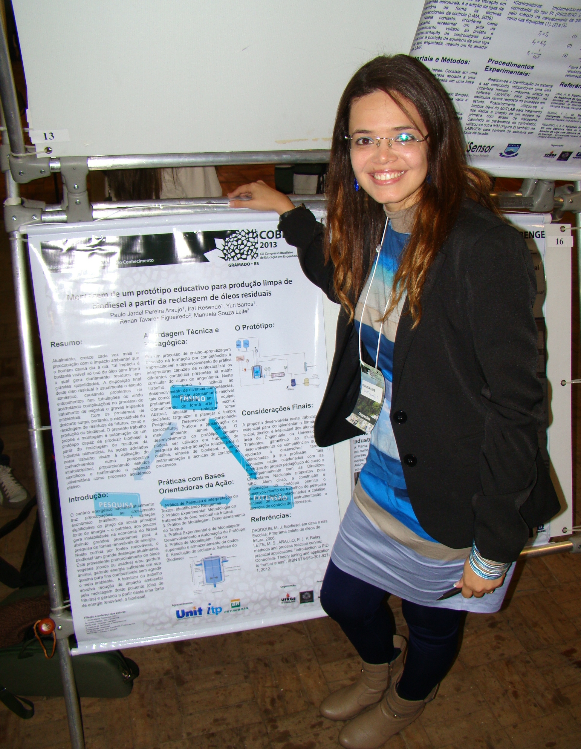 Durante o evento foi apresentado o trabalho “Montagem de um protótipo educativo para produção de biodiesel a partir da reciclagem de óleos residuais”, o qual é decorrente de um projeto apoiado pela Petrobrás S.A., e que além da professora Manuela Leite, conta também com a participação dos professores Paulo Jardel Araujo e Renan Tavares Figueiredo, além do envolvimento de alunos de iniciação científica e de mestrado da UNIT.