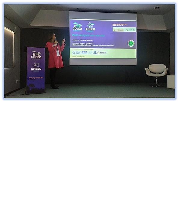 O trabalho foi apresentado no 23º Congresso Brasileiro de Engenharia Química (COBEQ 2021) integrado ao 18º Encontro Brasileiro sobre Ensino de Engenharia Química (ENBEQ 2021), realizados pela Associação Brasileira de Engenharia Química no período de 24 a 28 de outubro de 2021, e seguindo todos os protocolos de segurança sanitária. Historicamente, neste evento, reúnem-se diversos profissionais da academia e da indústria em todas as áreas da Engenharia Química, além de palestrantes internacionais, onde temáticas relacionadas à pesquisa, inovação e aplicação da Engenharia Química são apresentadas e discutidas.