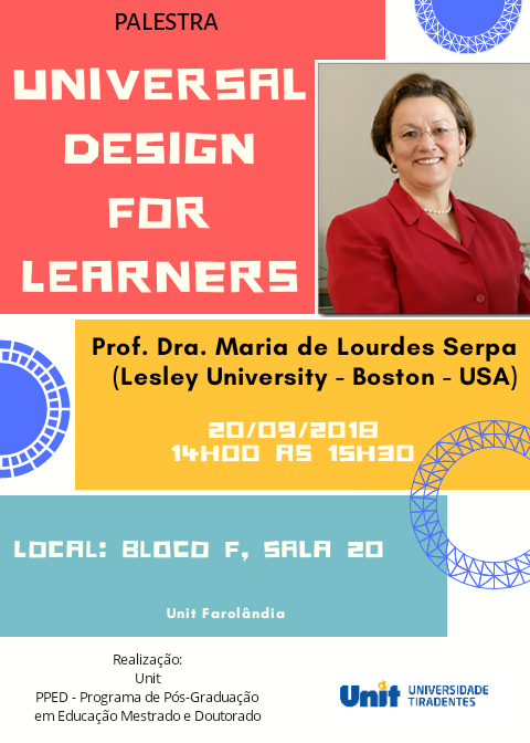 No PPED entre as atividades programadas está uma palestra para o corpo docente e discente intitulada Universal Design for Learners a ser proferida no dia 20 de setembro de 2018 às 14h na sala 20 do Bloco F.