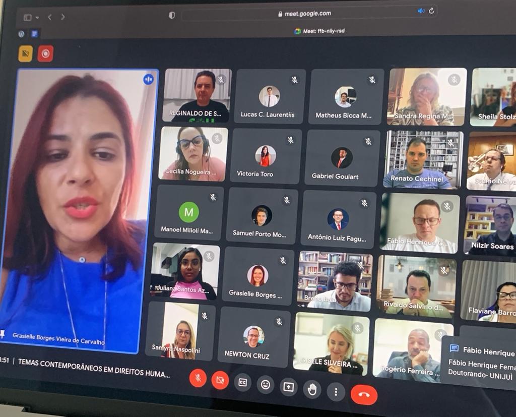 A Coordenadora do PPGD Unit, Profa. Dra. Grasielle Borges, participou da aula inaugural da disciplina e salientou acerca do ineditismo da iniciativa, da importância da disciplina para a interlocução entre os discentes de regiões distintas do país, bem como da felicidade em fazer parte como docente da disciplina cuja aula será ministrada no dia 05/12 em parceria com a Profa. Dra. Daniela Silva Fontoura de Barcellos (PPGD/UFRJ) abordando a temática da Violência de Gênero e Políticas Públicas Preventivas.