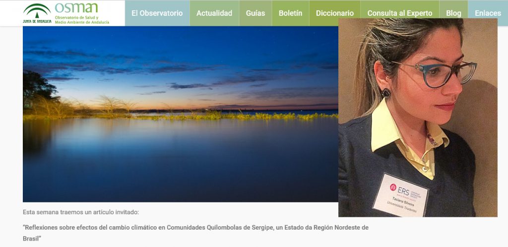 O projeto de Dissertação da mestranda do Programa de Pós-graduação em Saúde em Ambiente da UNIT, Tarciana Silveira Passos Reflexiones sobre efectos del cambio climático en Comunidades Quilombolas de Sergipe, un Estado da Región Nordeste do Brasil, ganhou evidência no Observatório de Salud y Medio Ambiente de Andalucía (OSMAN), durante sua experiência de Metrado-sanduíche na Espanha: Escuela Andaluzade Salud Publica, em Granada, e na Universidad Pablo de Olavide, em Sevilha.
