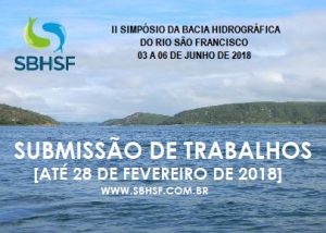 O evento será realizado no período de 03 a 06 de Junho de 2018 na Universidade Federal de Sergipe com tema central “Desafios da Ciência para um Novo Velho Chico”. A data limite para submissão de trabalhos é até dia 28/02/2018. Mais informações no site http://sbhsf.com.br/